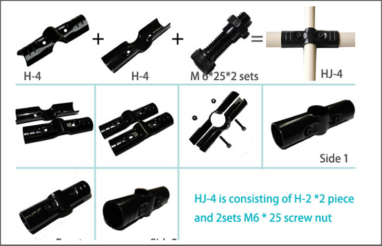 Because metal pipe joints are fixed by M6*25 bolt and nut, only need a M6 spanner to tighten and loosen when assembly and disassembly pipe rack products.