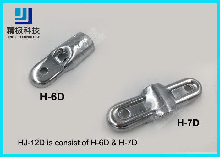 The HJ-12D is a metal connector that lets you make a three-pipe intersection with two adjustable angles. This joint mirrors the applications of the HJ-7D connector. These angle joints let you have multiple applications like bracing, hinging, pegging, deportation, and much more. Each side pipe can rotate up to 175 degrees.