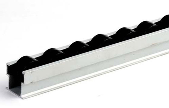 The Aluminum roller track is with a aluminum frame and plastic wheels.